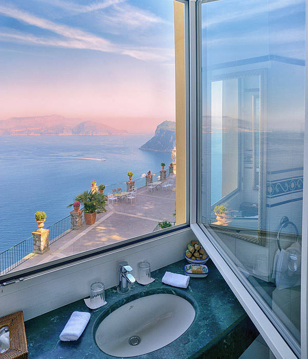 From the rooms, terraces and cliff top gardens of this iconic 5 star luxury hotel, the entire sweep of the Bay of Naples can be admired.