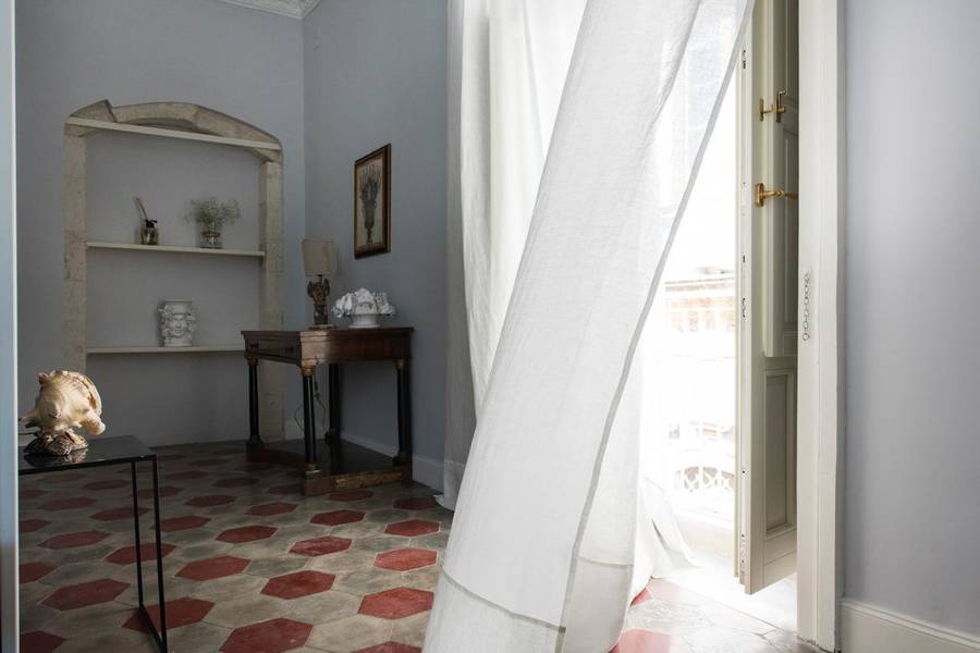 The style is a perfect mesh of contemporary design and classic Sicilian, creating a timeless elegance that looks to the future while remaining firmly rooted in Sicily's noble history. The renovation work focused on highlighting local materials like pitchstone and the external balconies along the facade retain their original Baroque style. Bed linens are vintage lace coverlets and monogrammed pillowcases, and all guest rooms are soundproofed and have air conditioning to guarantee a perfect night's rest.
